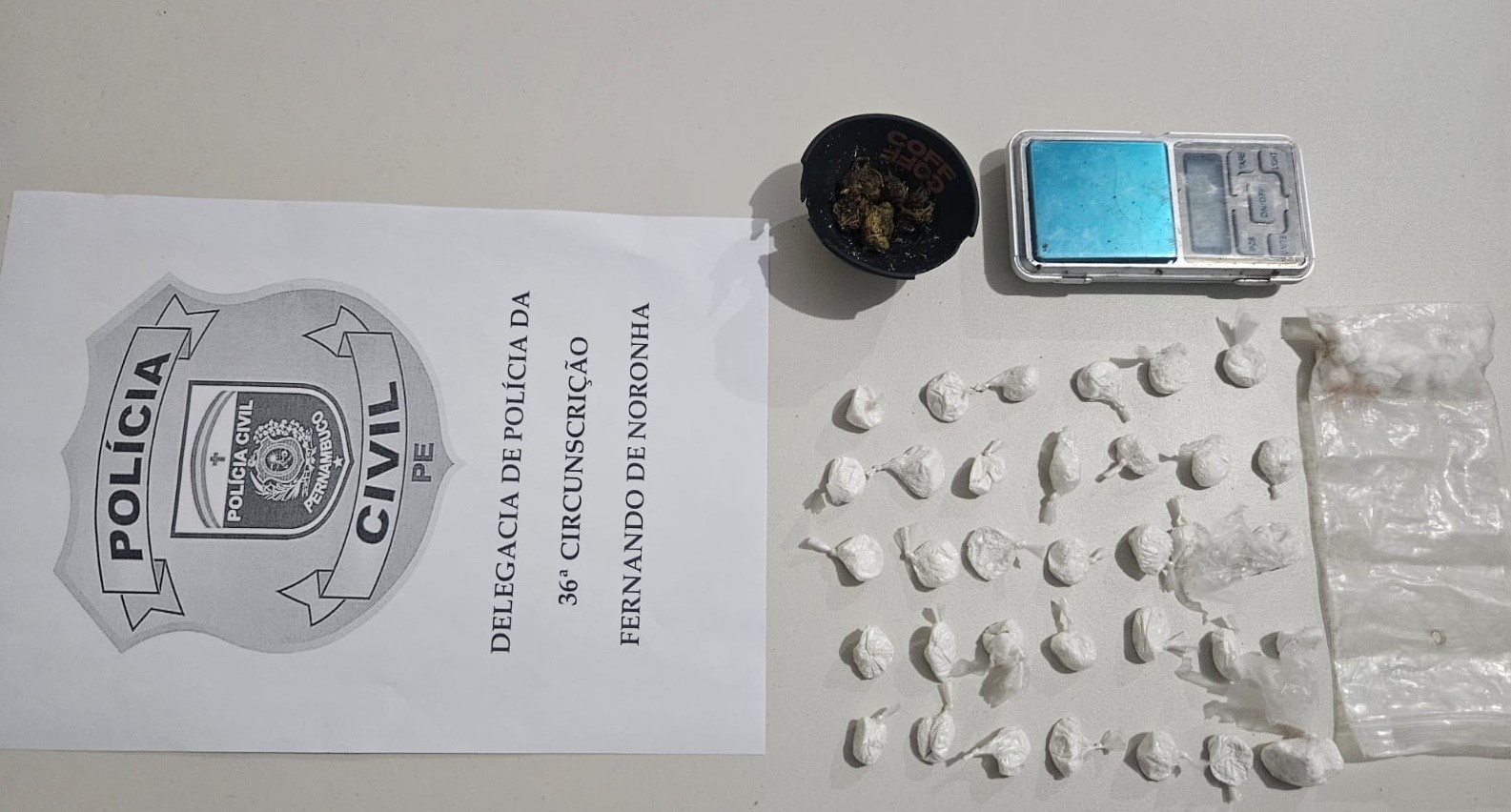 Suspeito de tráfico de cocaína é preso em Fernando de Noronha A Polícia Civil prendeu, no domingo (29), um homem de 40 anos suspeito de tráfico de drogas em Fernando de Noronha. Ele foi detido em casa, no bairro Três Paus, com 35 porções d...